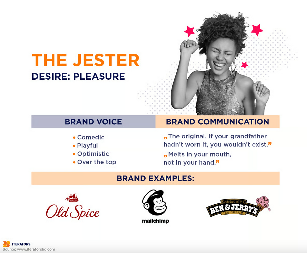 For example, M&M’s uses colourful characters and witty campaigns to bring joy and lightheartedness to snack time. Their ads often feature funny situations and playful banter, making the brand feel approachable and entertaining. Similarly, Old Spice fits the Jester archetype through its humorous and over-the-top commercials, making personal care fun and memorable. Its playful and unexpected tone turns a routine product into a source of entertainment and laughter.